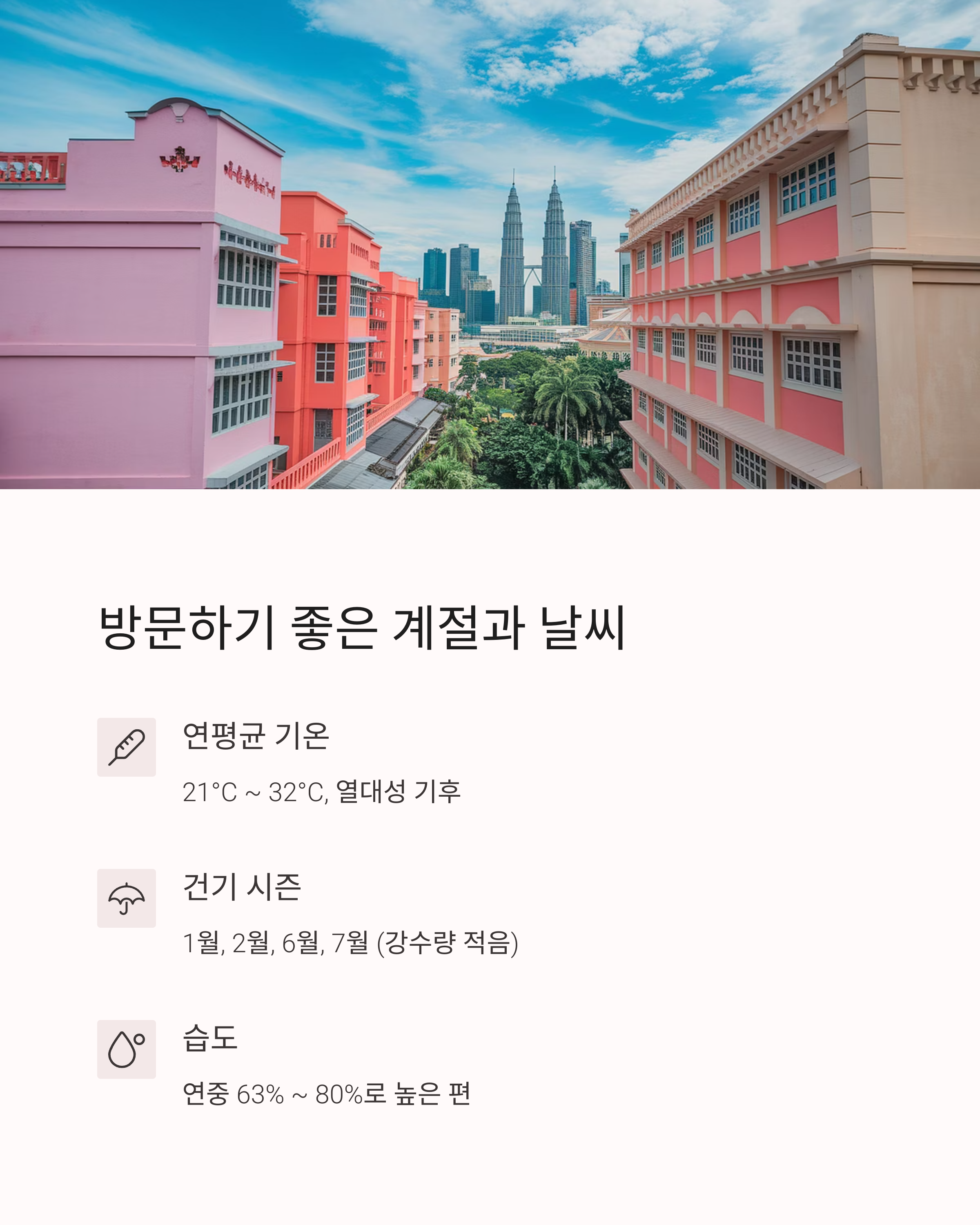 | 쿠알라룸푸르 평균 기온 | 연평균 21~32도 |